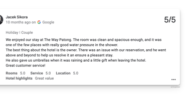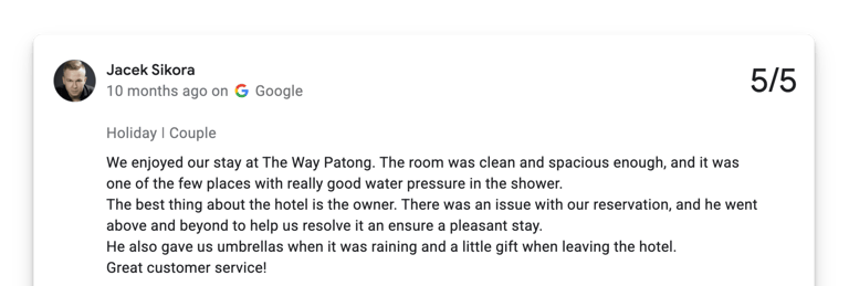Enjoy 15 spacious & comfortable rooms with private bathrooms, WiFi, air conditioning, and all essentials for a peaceful stay in Patong's budget boutique hotel.